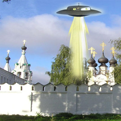 Тихо, как кошка, Фотиния прошмыгнула мимо спящих сестер и оказалась на улице. В лицо повеяло свежей прохладой летней ночи. Фотиния посмотрела на часы: три часа ночи, но почему так светло? И тут она увидела такое, что пожалела, что не захватила с собой мобильный телефон со встроенной видеокамерой. Прямо над обителью висела летающая тарелка, и свет исходил именно от нее! Вспомнив многочисленные статьи, в православной прессе на тему что инопланетяне – это бесы, Фотиния стала читать 90ый псалом и лихо крестить НЛО. Но летающая тарелка не исчезала. Фотиния подумала, что раз НЛО не исчезло, то может быть удастся его сфотографировать и хорошо бы сходить за телефоном. Тем временем летающую тарелку соединил с землей плотный пучок света. Он бил прямо на клумбу с любимыми цветами матушки игуменьи. И в этом потоке света появилась инопланетянка. И ладно бы это был зеленый человечек или чудище из фантастических фильмов - она была одетая по последнему писку православной моды: длинная черная юбка, мешковатая кофта, перепачканная свечным воском и лампадным маслом и белейший платок на голове. Ну, просто неестественно белый! Инопланетянка перекрестилась и поклонилась на все храмы, а потом пошла прямиком к Святотроицкому собору, и Фотиния последовала за ней. Двери собора на ночь заперты, но инопланетянка толкнула их и они открылись вовнутрь, хотя обычно открываются наружу. В храме должно было быть темно, но было светло. И тут Фотиния поняла, что свет исходит от платка таинственной незнакомки. Инопланетянка прошлась по храму, приложилась ко всем иконам и остановилась перед ракой с мощами Петра и Февронии. Храм наполнился изумительными звуками акафиста. Ни когда еще Фотиния не слышала такого прекрасного пения! В голове мелькнула надежда, что вдруг это ангел и надо срочно загадать желание, и Фотиния стала молиться: «Ангел, миленький, ну, пожалуйста, помоги мне выйти замуж, только не за пьяное быдло, а за хорошего православного мужчину средних лет и чтобы с жилплощадью!» Акафист окончился, инопланетянка приложилась к мощам, сделала три земных поклона и отошла в сторону. Платок медленно поднялся с ее головы и стал стремительно увеличиваться в размерах и надвигаться на раку с мощами. Вот он уже больше двухспальной простыни, вот он уже накрыл мощи вместе с близлежащими иконами и лампадами. И вдруг, завернутая в платок, рака с мощами поднялась в воздух и начала двигаться к выходу из храма, постепенно уменьшаясь в размерах. «Мощи воруют!» - подумала Фотиния, и только собралась закричать, как услышала голос инопланетянки: «Копировать – не значит воровать!» И в самом деле – рака с мощами осталась на месте, в платок же была завернута уменьшенная ее копия. В то же время на голове инопланетянки так же по-прежнему находился все тот же белейший платок. «Кто вы?» - спросила Фотиния. «Я – выпускница регентских курсов на планете Правый Клирос звездной системы Просфора Центавра православной галактики Эклиссия. По благословению Патриарха Вселенского Иннокентия, курирующего молодежный отдел, на планете Левый Клирос открывается храм во имя Святых Петра и Февронии, покровителей Симбиоза. У нас многие девициоиды не могут найти своего платочка и создать единый организм девициус-платочкиус или, по-русски – девица платочковица.»