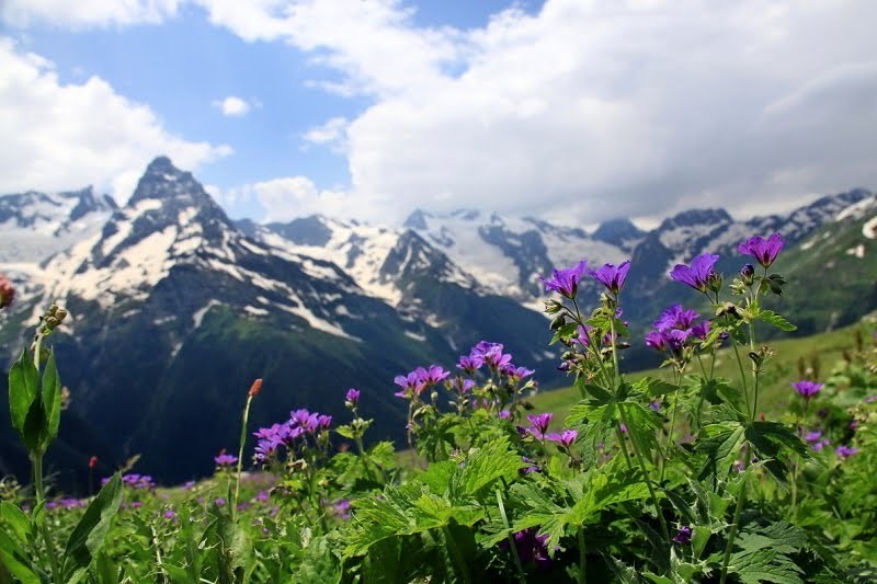 « А какие там горы! Поднимешься высоко, посмотришь вдаль, и сколько можешь видеть, все зеленые горы, а на некоторых вершинах снег даже летом не тает. А трава высокая, сочная и много цветов, и так пахнут… Воздух - надышаться не можешь! Иногда облака так низко плывут, что можно рукой дотронуться…»